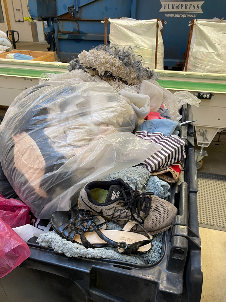 Nedenfor er billeder fra sorteringsanlægget NewRetex. Her ses gode eksempler på, hvordan ikke-tekstil havner blandt tekstilaffald.